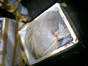 Số rắn trên được để trong 2 thùng xốp, phía trên ngụy trang bằng cá.