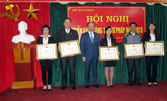 Nhân dịp này, ngành Tư pháp của tỉnh đã phát động phong trào thi đua năm 2015 và biểu dương, khen thường cho các tập thể, cá nhân có thành tích cao trong năm 2014 (ảnh).