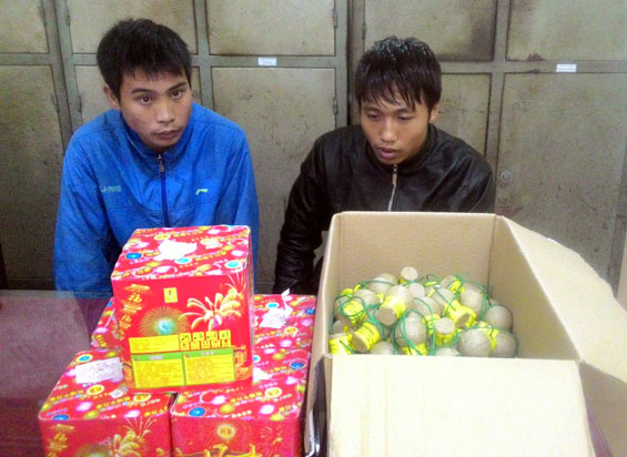 Hồi 15 giờ 40 phút ngày 24-12, Tổ tuần tra Công an thị xã Phổ Yên đi tuần tra tại khu vực xóm Thành Lập, xã Tân Hương, thị xã Phổ Yên đã bắt quả tang hai đối tượng là Nguyễn Văn Huy (sinh năm 1989), trú tại xóm Cò, xã Đông Cao, thị xã Phổ Yên và Trương Tiến Bình (sinh năm 1996), trú tại xóm 3, thị trấn Quân Chu, huyện Đại Từ đang vận chuyển 05 hộp pháo giàn và 114 quả pháo trứng, có tổng trọng lượng là 13,1kg.