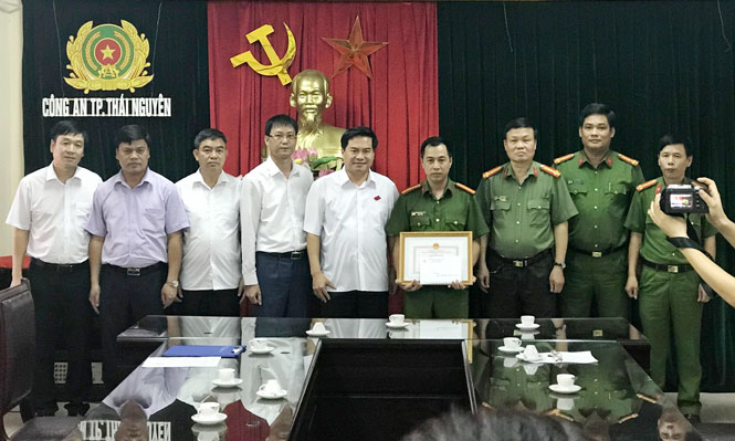 Chiều 18-7, đồng chí Lê Quang Tiến, Phó Bí thư Thành ủy, Chủ tịch UBND T.P Thái Nguyên đã trao Giấy khen và Quyết định khen thưởng đột xuất cùng số tiền 20 triệu đồng cho Đội Cảnh sát điều tra tội phạm về ma túy, Công an T.P Thái Nguyên vì đã có thành tích đặc biệt xuất sắc trong đấu tranh phòng, chống tội phạm ma túy tháng 7-2018.