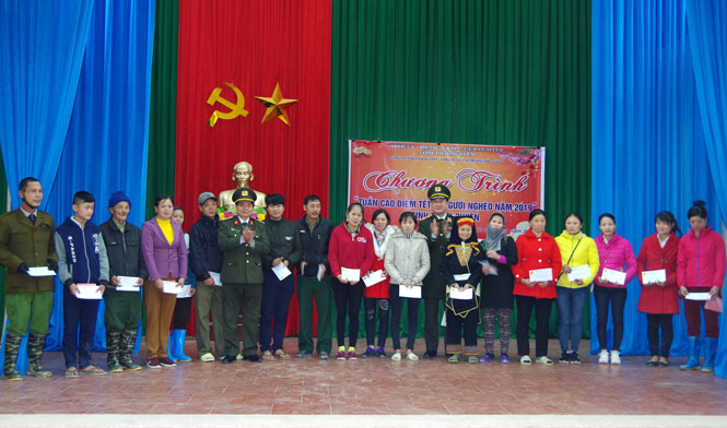 Lãnh đạo Công an tỉnh tặng quà cho các hộ nghèo ở xã Phương Giao (Võ Nhai) nhân dịp Tết Nguyên đán Kỷ Hợi 2019.