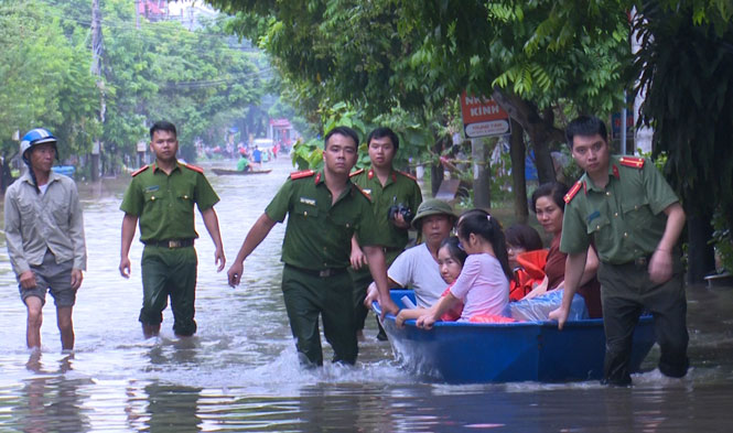 Cán bộ, chiến sĩ Công an tỉnh luôn tích cực tham gia công tác phòng, chống lụt bão – tìm kiếm cứu nạn trên địa bàn.