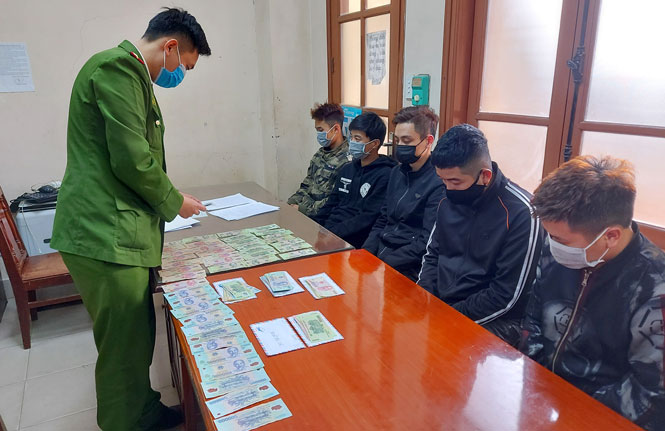 Tổ công tác đã lập biên bản bắt người phạm tội quả tang với 5 đối tượng nêu trên, thu giữ tang vật là một bộ bài tú lơ khơ và số tiền 14.760.000 đồng.