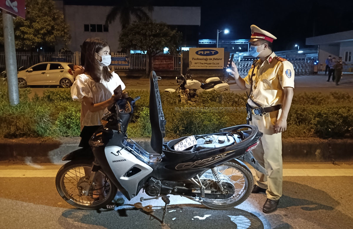 Trong suốt quá trình theo các chiến sĩ Công an huyện Phú Bình đi tuần tra trong khu công nghiệp, chúng tôi chứng kiến nhiều hành vi vi phạm của các thanh niên điều khiển xe máy như: Đi trái phần đường, chở quá số người quy định, không đội mũ bảo hiểm, không có giấy tờ xe... Hầu hết những đối tượng này chưa đến 20 tuổi, thậm chí có trường hợp chỉ mới 15 tuổi.