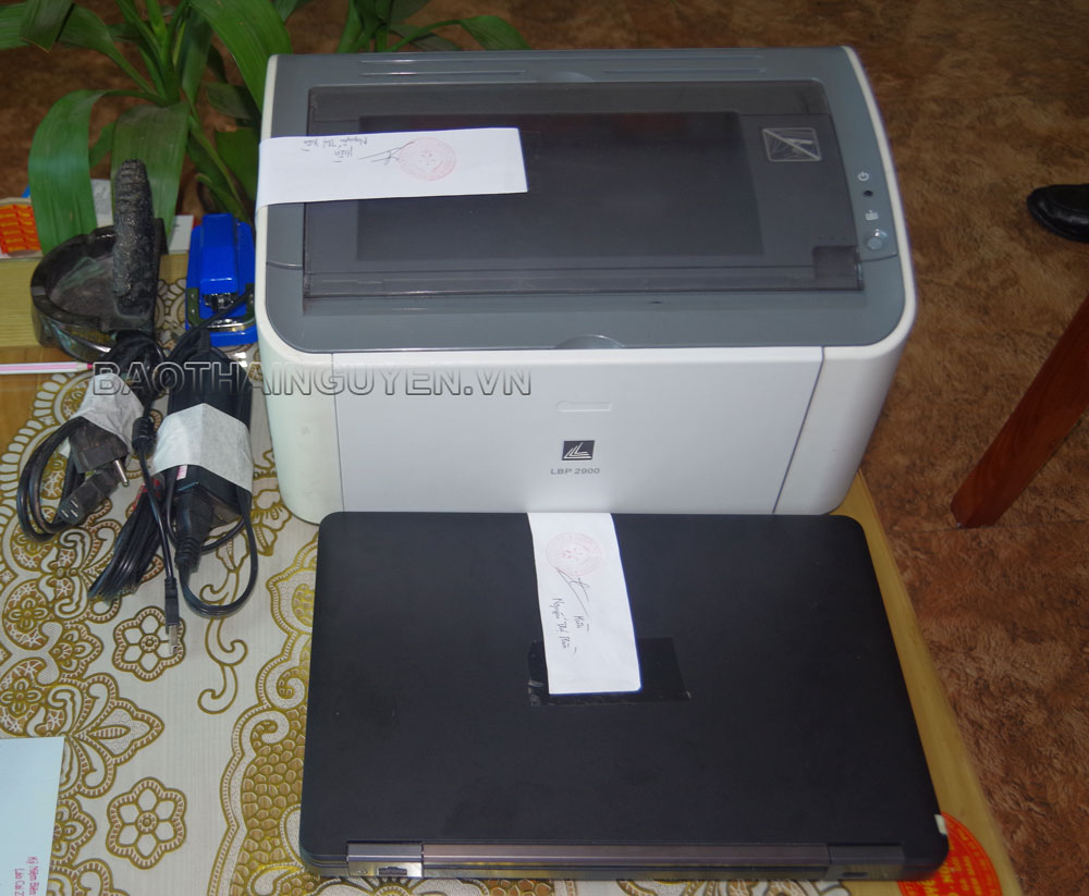 Tiến hành khám xét khẩn cấp người, phương tiện, nơi ở của 7 đối tượng trên, cơ quan Công an thu giữ 1 dấu hình tròn nghi giả của Bệnh viện Trung ương Thái Nguyên; 45 giấy PCR nghi giả, 1 máy vi tính xách tay, 1 máy in dùng để soạn thảo, in các giấy kết quả xét nghiệm PCR.