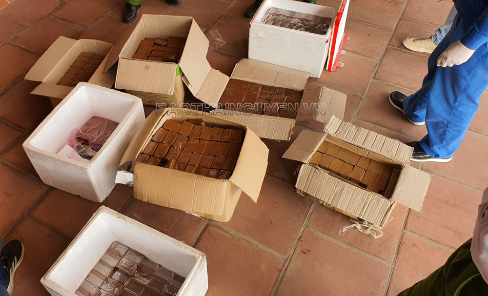 Cụ thể, ngày 6-1, Phòng Cảnh sát môi trường Công an tỉnh phối hợp với Công an T.X Phổ Yên bắt quả tang tại hộ gia đình ông Ngô Văn Quân, sinh năm 1971, trú tại xã Tiên Phong (Phổ Yên) đang diễn ra hoạt động giết mổ 1 cá thể động vật là Hổ để nấu cao; trong khu vực bếp ăn, sân nhà có nhiều tang vật liên quan gồm: 1 cá thể Hổ đông lạnh, 1 bộ xương Hổ, 2 bộ da Hổ, 1 đầu Sơn Dương đông lạnh và các loại xương, thịt động vật.