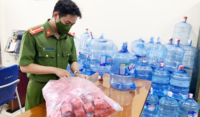 Trước đó, sáng 18-5, tổ công tác Đội Cảnh sát kinh tế, Công an quận Hoàng Mai phát hiện Giao đang tập kết 10 bình nước Lavie (loại 19 lít) và 10 bình nước Viva loại 18,5 lít không có hóa đơn, chứng từ chứng minh nguồn gốc xuất xứ để giao cho khách.