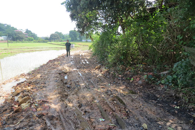 Tuy nhiên, con đường xảy ra tranh chấp kể từ khi ông Hà Trọng Quân chuyển nhượng thửa đất số 420 cho bà Vũ Thị Thoa (tháng 1-2018). Ngày 9-5, ông Quân đã cuốc gần hết chiều rộng một đoạn đường, chỉ còn một lối đi nhỏ, do đó các hộ dân phải vác lúa về nhà, không đưa máy móc vào ruộng cày cấy được, gia đình ông Luyến phải gửi xe máy ở bên ngoài lội ruộng vào nhà. Sự việc đã gây bức xúc cho các hộ dân ở khu vực này. Ông Hà Trọng Phương và một số người dân trong xóm cho biết: Ông Quân có diện tích ruộng 688m2 nằm giáp đoạn đường đi nêu trên bán lại cho bà Vũ Thị Thoa. Để đảm bảo đủ diện tích đất giao cho bà Thoa, ông Quân đã cuốc một phần đường liền kề với diện tích ruộng vì cho rằng trước đây gia đình ông đã cắt gần 100m2 ruộng để mở rộng con đường, nay bán cho bà Thoa, ông phải đòi lại để giao đủ diện tích đất.