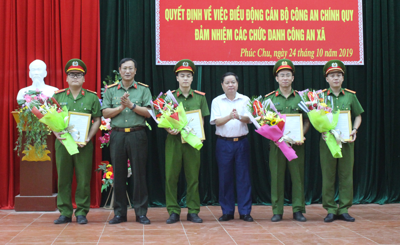 Tại buổi Lễ, lãnh đạo Công an tỉnh đã công bố và trao quyết định điều động 9 đồng chí công an chính quy đảm nhiệm các chức danh Trưởng công an xã, phó trưởng công an xã và công an viên thường trực tại 2 xã Trung Hội và Phúc Chu. Theo đó, đồng chí thiếu tá Nguyễn Đình Kỳ, Đội trưởng Đội thi hành án hình sự và hỗ trợ tư pháp, Công an huyện Định Hóa được điều động giữ chức Trưởng Công an xã Trung Hội. Đồng chí Thiếu tá Ma Văn Thể, Phó đội trưởng Đội xây dựng phong trào và Bảo vệ an ninh tổ quốc, Công an huyện Định Hóa được điều động giữ chức Trưởng công an xã Phúc Chu. Được biết, Trung Hội và Phúc Chu là 2 xã đầu tiên của huyện Định Hóa được bố trí lực lượng Công an chính quy đảm nhiệm các chức danh Công an xã và theo lộ trình từ nay đến năm 2021 sẽ bố trí lực lượng công an chính quy tại 22 xã, thị trấn còn lại.