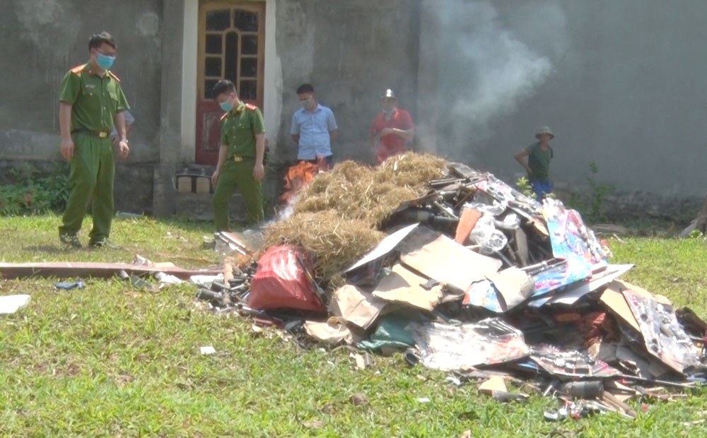 Đây là số vũ khí, vật liệu nổ do Công an huyện và công an 20 xã, thị trấn thu giữ được trong các vụ việc, thu gom từ việc vận động người dân địa phương giao nộp. Toàn bộ số vũ khí, vật liệu nổ, công cụ hỗ trợ trên sau khi kiểm tra, phân loại đã được tiến hành tiêu hủy theo đúng quy trình, thủ tục nghiêm ngặt, có sự giám sát chặt chẽ của hội đồng tiêu hủy, bảo đảm an toàn tuyệt đối.