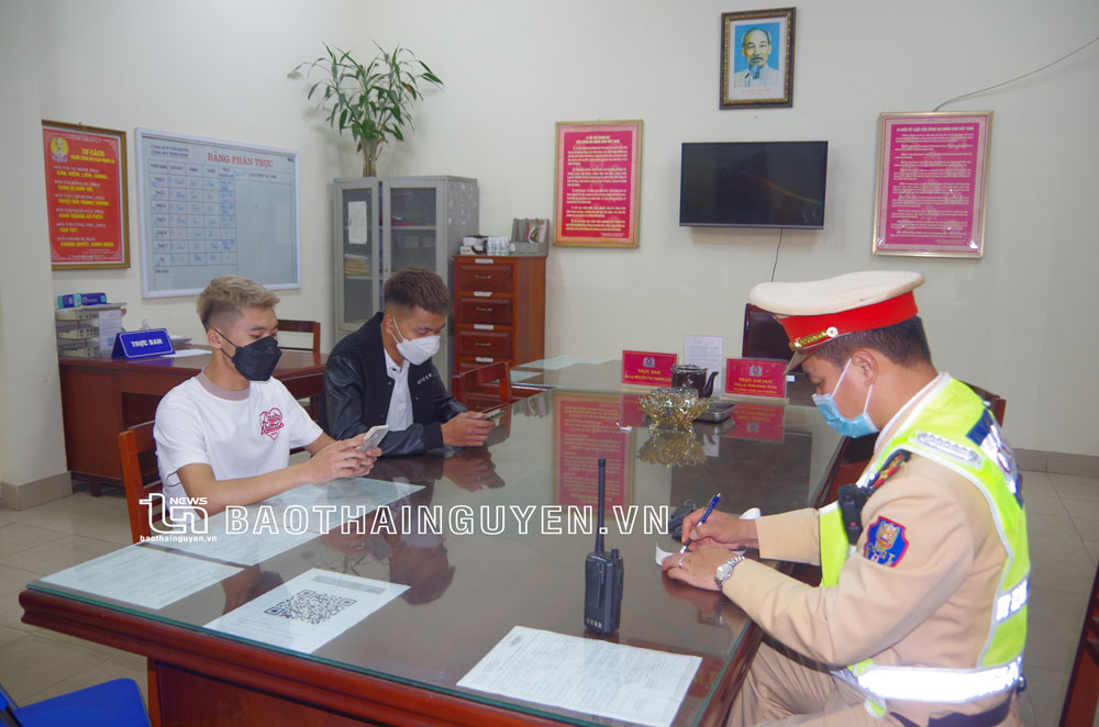 Cán bộ Đội 252 xử lý các trường hợp vi phạm Luật Giao thông đường bộ.