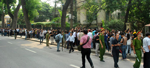 Hoà trong nỗi đau thương vô hạn của toàn thể dân tộc Việt Nam, sáng 8/10, trước cửa nhà Đại tướng Võ Nguyên Giáp ở số 30 Hoàng Diệu, Ba Đình, Hà Nội, hàng nghìn người vẫn lặng lẽ đứng xếp hàng chờ được vào viếng Đại tướng.