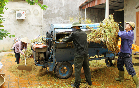 Điều làm nên hương vị thơm ngon khác biệt của tương nếp Úc Kỳ là do được làm từ gạo nếp Thầu dầu, một loại lúa đặc sản của Úc Kỳ mà nơi khác không thể sánh bằng. Ảnh: Người dân làng Hồng Kỳ đang thu hoạch nếp Thầu dầu.