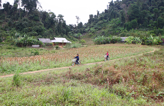 Mặc dù chỉ cách trung tâm xã khoảng 7 km nhưng xóm Lũng Hoài lại nằm trên đỉnh núi cao nên đời sống còn gặp nhiều khó khăn, chủ yếu dựa vào trồng ngô và chăn nuôi quy mô nhỏ. Xóm hiện chưa có điện lưới, 100% các hộ trong xóm đều thuộc diện hộ nghèo, vào lúc giáp hạt còn có khoảng 10 hộ thiếu ăn. Ảnh: Khu vực trung tâm xóm Lũng Hoài.