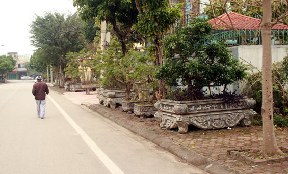 Nhiều đoạn vỉa hè trong Khu dân cư số 9 phường Gia Sàng đã trở thành nơi bày cây cảnh khiến người đi bộ chỉ còn cách đi xuống đường.