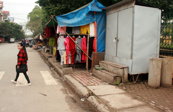 Toàn bộ vỉa hè tuyến đường lối vào khu vực chợ sinh viên (Trường Đại học Sư Phạm Thái Nguyên) đã bị lấn chiếm làm quầy bán hàng của các tiểu thương.