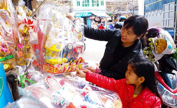 Trong ngày Tết ông Công, ông Táo, mỗi gia đình đều sắm sửa một bộ vàng mã đầy đủ gồm quần áo, giày dép, tiền vàng, cá chép để tiễn các ông lên “chầu trời”. Năm nay, mặt hàng này có mẫu mã đa dạng, kiểu dáng phong phú, bắt mắt hơn. Giá dao động từ 35.000 đồng đến 300.000 đồng/bộ; ngựa từ 25.000 đồng đến 120.000 đồng/con tùy loại to, nhỏ; quần áo từ 10.000 đến 20.000 đồng/bộ.
