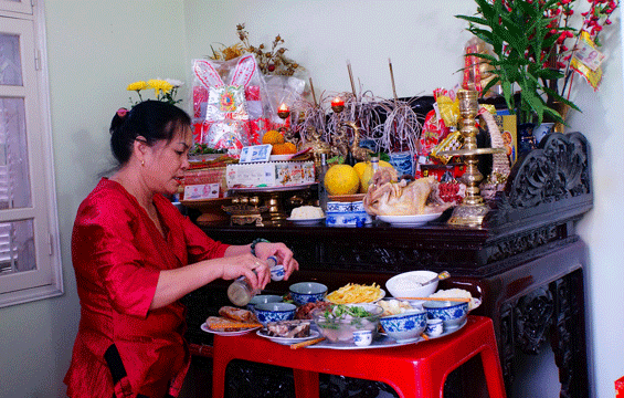 Với mong ước về một năm mới may mắn, thành công, mâm lễ cúng ông Công, ông Táo được mỗi gia đình đều chuẩn bị tươm tất, thịnh soạn với đủ màu sắc và các món ăn truyền thống như xôi, gà luộc, nem rán, giò...