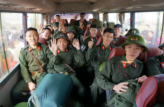 Tân binh huyện Phú Bình lên xe về đơn vị.