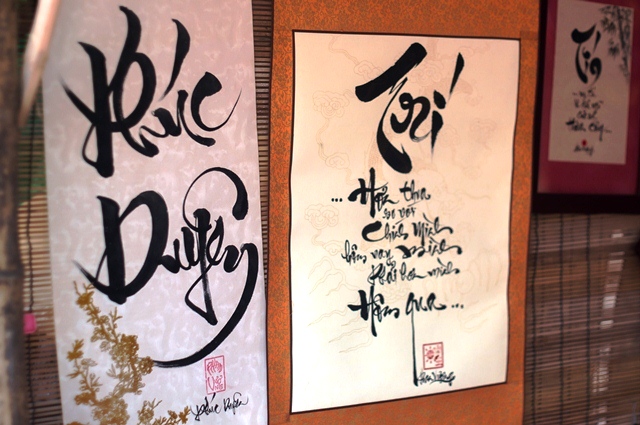 Bên cạnh chữ Hán - Nôm, các mẫu câu đối, câu chúc bằng chữ quốc ngữ cũng được nhiều người chọn treo bởi tính thông dụng, dễ đọc, dễ hiểu.