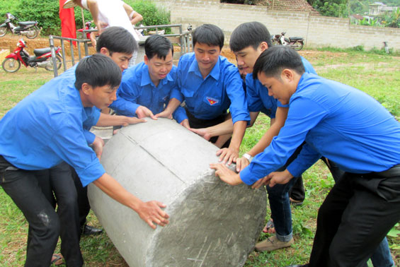 Góp phần chung tay xây dựng nông thôn mới, thời gian qua, tuổi trẻ Thái Nguyên đã hoàn thành trên 3.000 bể thu gom rác thải trị giá hàng tỷ đồng, thu hút hàng vạn lượt đoàn viên, thanh niên tham gia. Trong ảnh: Triển khai xây dựng bể thu gom rác thải tại xã Phú Thượng (Võ Nhai).