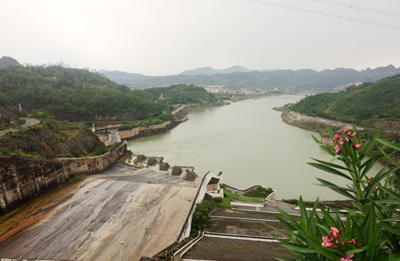 Con đập cao 128m, dài 734m này được làm bằng đất, đá và bê tông. Hơn 6 vạn người tham gia, gần 50 triệu m3 đất, đá được đổ vào con đập.