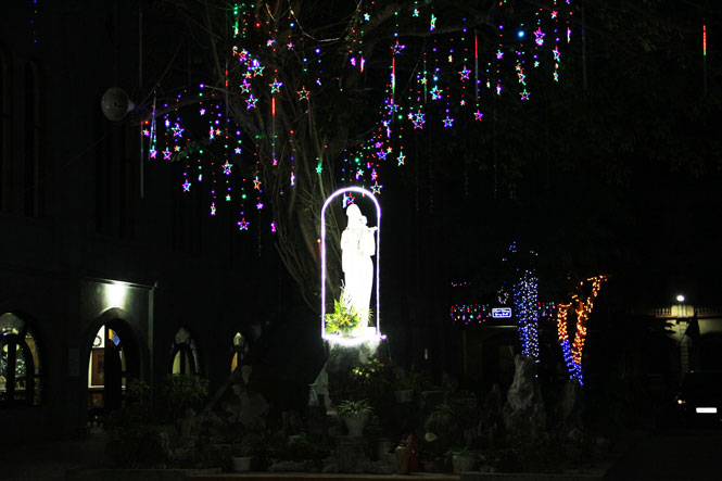 Mấy ngày gần đây, khi màn đêm buông xuống mặc dù nền nhiệt ở Thái Nguyên giảm xuống rất sâu, nhưng cảm giác giá rét như được giảm đi rất nhiều bởi màu sắc lung rực rỡ của không khí Lễ Giáng sinh. Ở khắp mọi nơi, từ sảnh chính của Nhà thờ, đến trước cửa của các gia đình giáo dân; từ các nhà hàng, quán cà phê đến những nơi công cộng đều giăng đèn màu lung linh… Không khí Giáng sinh đã tràn ngập mọi nơi.