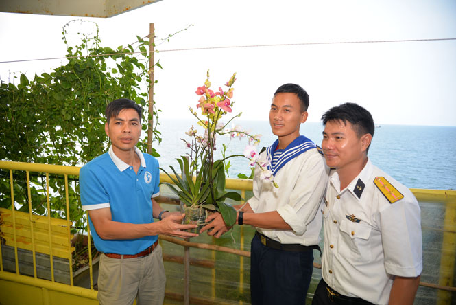 Những nhành hoa lan - quà gửi tặng là món ăn tinh thần đối với các chiến sĩ nhà giàn.