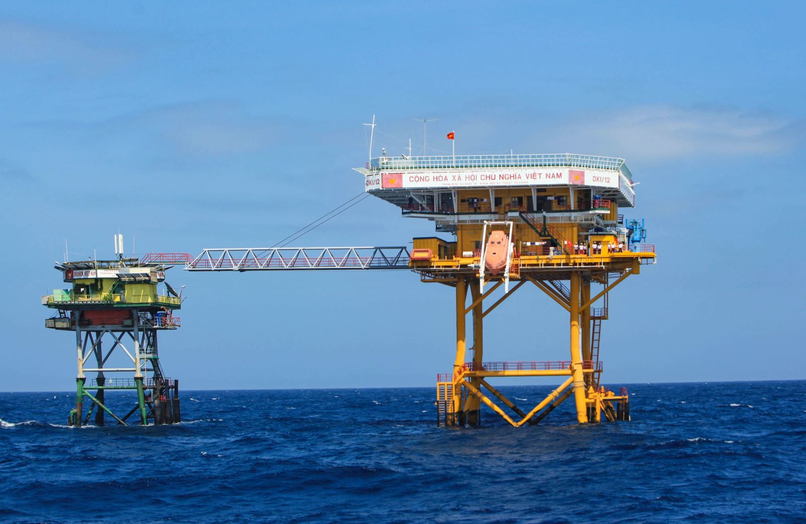 Cờ Tổ quốc tung bay trên nóc Nhà giàn DK1.