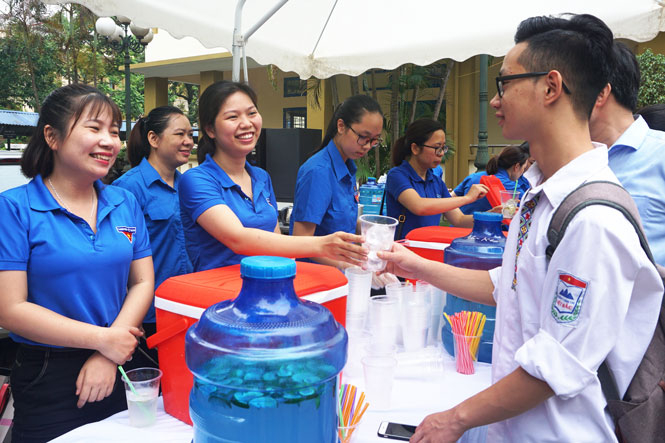 Các điểm thi được thanh niên tình nguyên phát nước lọc tinh khiết miễn phí cho thí sinh.