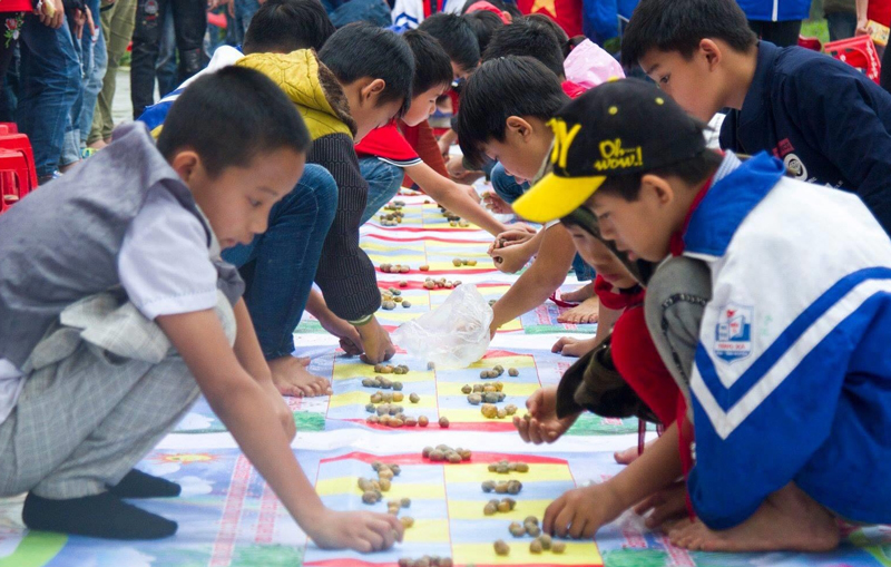Học sinh Trường Tiểu học Tràng Xá (Võ Nhai) trải nghiệm học toán qua trò chơi dân gian “ô ăn quan”.