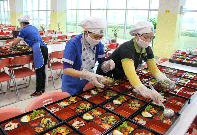 Mỗi ngày Công ty Samsung Electronic Việt Nam Thái Nguyên cung cấp hơn 100.000 suất ăn cho công nhân. Công ty đặc biệt chú trọng thực hiện nghiêm các bước đảm bảo an toàn thực phẩm trước, trong và sau khi chế biến.