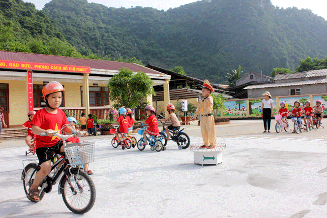 Trường Mầm non xã Tân Dương tổ chức hoạt động trải nghiệm “Bé tìm hiểu luật giao thông”.