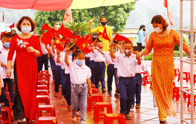 Học sinh Trường Tiểu học Sông Cầu (thị trấn Sông Cầu, huyện Đồng Hỷ) trong ngày khai giảng.