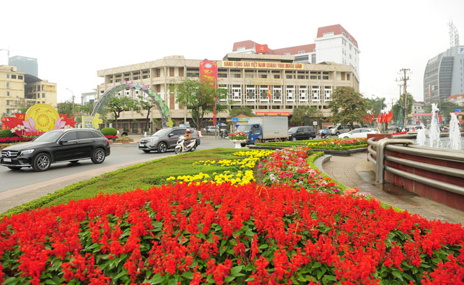 Trung tâm T.P Thái Nguyên được trồng rất nhiều hoa tươi, phối màu đẹp mắt.
