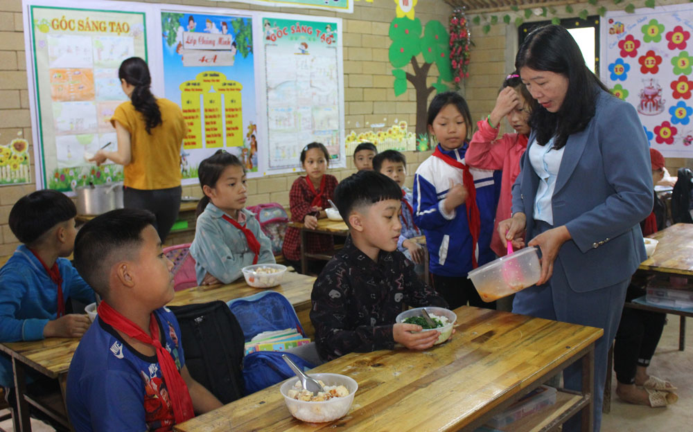 Bữa ăn bán trú của các em Trường Tiểu học Lũng Luông được Quỹ “Trò nghèo vùng cao” tài trợ. Nhà trường luôn đảm bảo mỗi suất ăn của các em đầy đủ dưỡng chất.