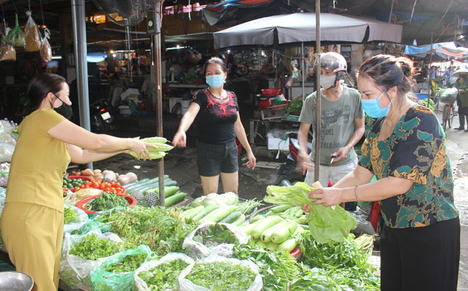 Người dân đeo khẩu trang khi đến nơi công cộng để bảo vệ sức khỏe bản thân, gia đình và cộng đồng. Trong ảnh: Người dân mua hàng tại chợ Chùa Hang, phường Chùa Hang (T.P Thái Nguyên).