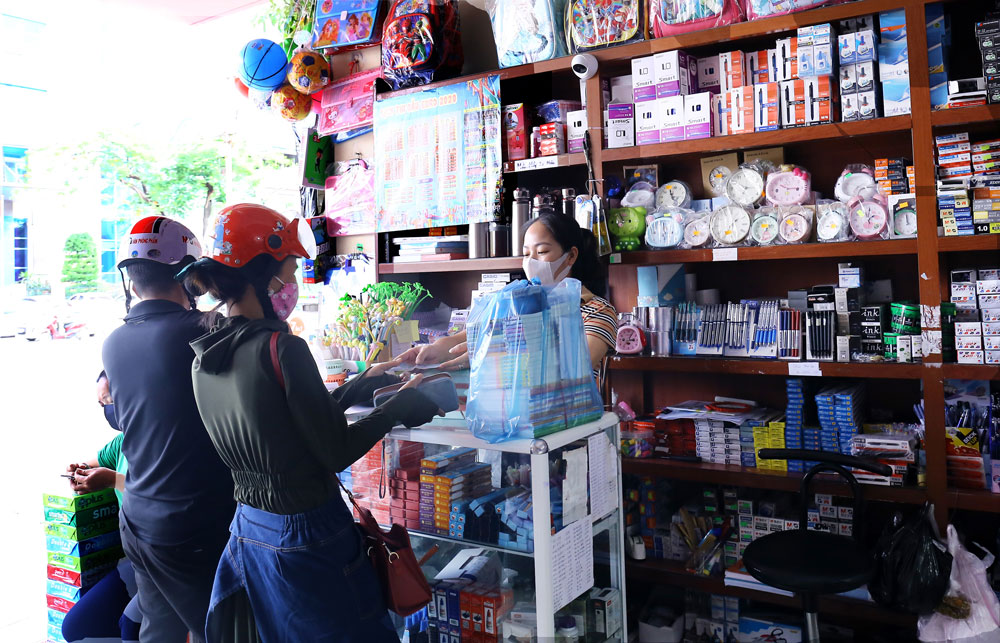 Các cửa hàng sách giáo khoa, văn phòng phẩm những ngày gần đây trở nên đông đúc do nhu cầu mua sắm sách giáo khoa và đồ dùng học tập tăng cao.