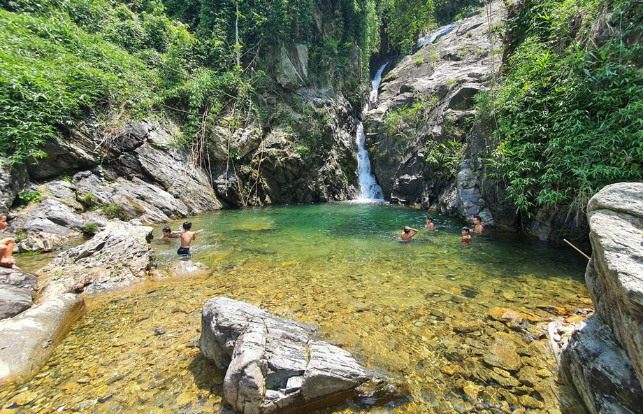 Ngoài tắm tại suối, các bể bơi nhân tạo được đầu tư tại các điểm du lịch ở xã Hoàng Nông, La Bằng cũng thu hút nhiều khách du lịch đến vui chơi.