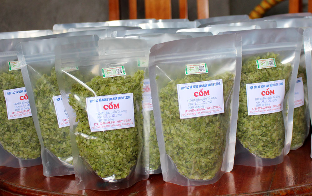 Nhằm nâng cao giá trị và quảng bá thương hiệu cốm nếp Vải Phú Lương, trong vùng có Hợp tác xã Nông sản nếp Vải Ôn Lương đã tiên phong trong việc đầu tư bao bì, nhãn mác và tem truy suất nguồn gốc để đóng gói sản phẩm cốm.