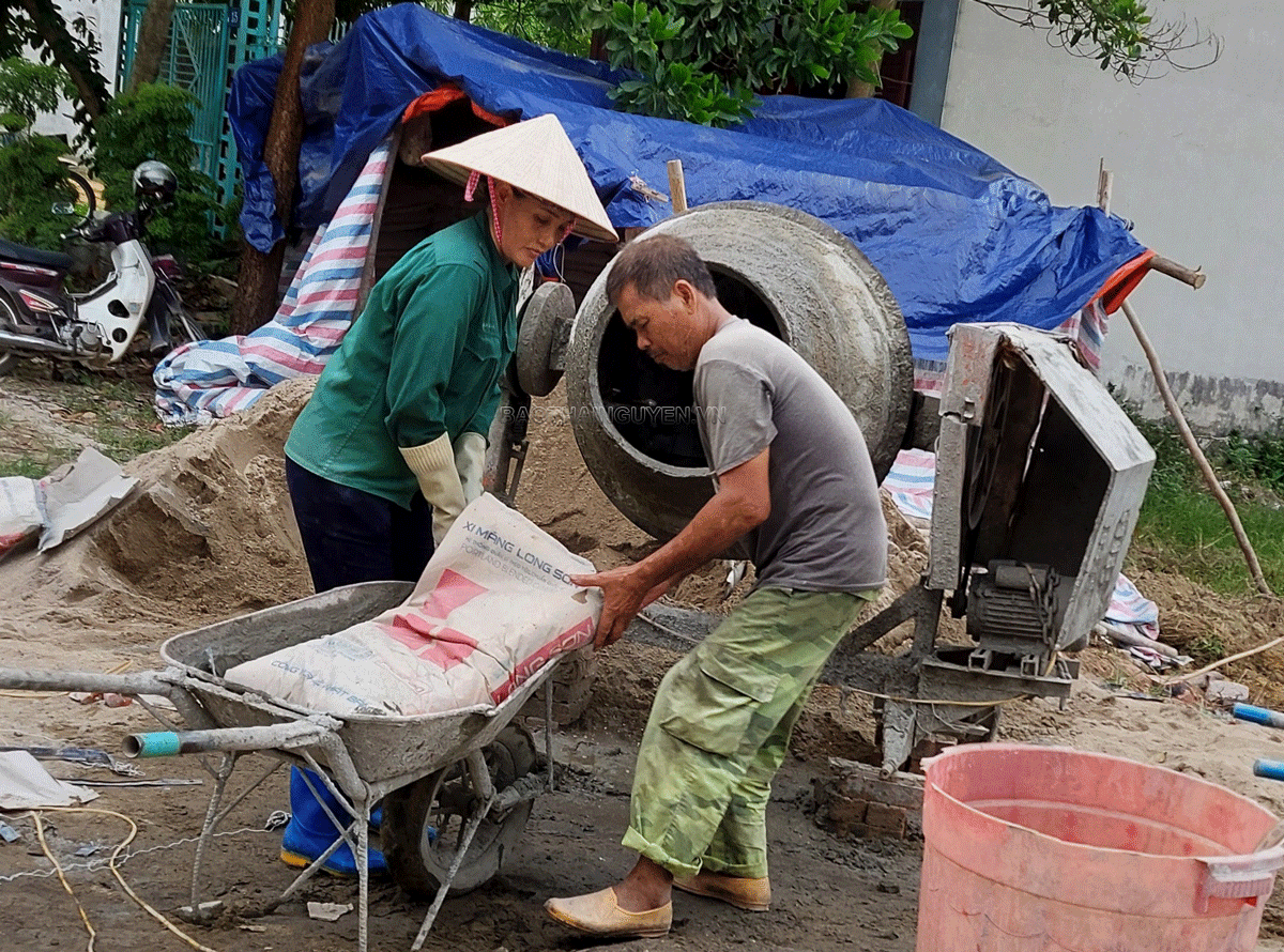 Thấy chúng tôi tò mò về đời phu hồ, bà Dương Thị Chúc (Phú Bình) buông xe “rùa” xuống nền đất, dùng khăn vắt vai lau mồ hôi mặt, kể: Cả ngày đi làm oải hết người, về nhà vội lo cơm nước cho chồng, con. Dọn dẹp, giặt giũ, khuya muộn mới được lên giường. Chợp chưa đã mắt lại vùng dậy, lùa vội miếng cơm rồi tất tưởi đi làm…