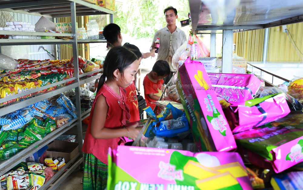 - Trước đây thôi, mấy năm nay người ta tuyên truyền về dùng hàng Việt nhiều lắm. Từ ngày có điện, dân bản được nghe đài, xem tin tức nữa nên biết rồi. Trước, quán nhà tôi á, bán mấy cái nước uống, thạch hoa quả trong gói giấy nhựa hay kẹo dẻ 6 mùi, thịt hổ… chạy lắm, chỉ 2 đến 3 nghìn/gói, màu sắc lại rực rỡ nên trẻ con nó thích và mua đông lắm. Nhưng giờ có bán cũng không đứa nào mua đâu.