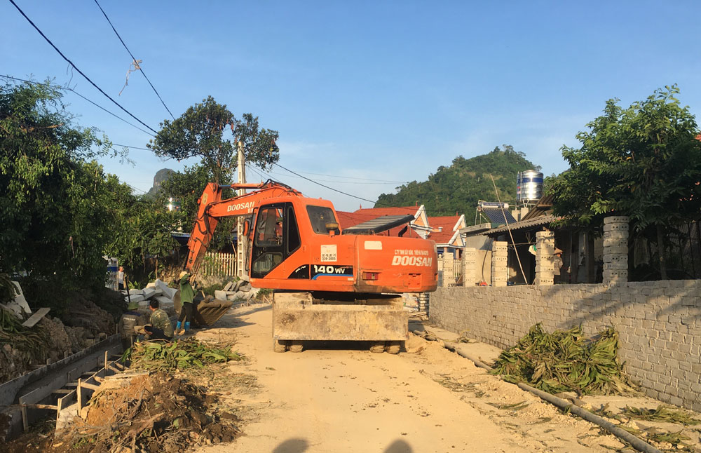 Tuyến đường từ trung tâm xã Phương Giao vào Đồng Giong đang được thi công cải tạo.