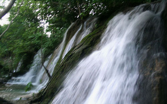 Từ trên đỉnh thác ở độ cao 35m nhìn xuống ai cũng muốn đến được chân thác - nơi có những khối đá lô nhô, những thảm thực vật xanh mượt và những hang động kỳ thú. Muốn xuống được nơi đó phải trải qua một đoạn đường “chinh phục”. Bước xuống hơn 150 bậc đá, mỗi bậc là một góc độ, như một cảnh quay chậm của dải lụa trắng rộng 40m cùng ta cuốn xuống thấp, vô tận, không dứt. Hơi nước cuộn lên màn khói, hư ảo mà lại như cầm nắm và cảm nhận được rất rõ. Đến chân thác, bám theo dây leo rừng, bước lên những tảng đá lô nhô ra ngoài mặt nước. Tạo hóa thật khéo sắp đặt, 7 – 8 “con voi” (tảng đá) khoác trên mình tấm “áo choàng” xanh mướt của những thảm cỏ trông như đàn voi đang chen nhau tắm suối. Ngồi trên “lưng voi”, dưới chân là dòng nước cuộn chảy qua các ngóc ngách đá, nhìn lên dòng thác - hiện lên trong mắt là một vẻ đẹp tuyệt vời.