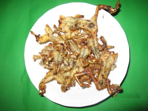 Nhái là món ăn dân dã chế biến kiểu nào cũng đặc sắc. Ngoài những món thông thường như nấu cháo, nấu cà ri, lăn bột chiên... có một món ăn nhanh, gọn, dễ làm mà “các đấng mày râu” rất khoái đó là nhái cơm chiên giòn.