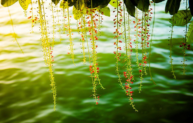 Những bông hoa lộc vừng, đỏ rực, nhỏ li ti, rơi rụng khắp mặt Hồ Gươm khiến khung cảnh đẹp nên thơ, lãng mạn. Mỗi năm, cây nở hoa hai lần, đầu mùa hè và cuối mùa thu. Mỗi lúc mặt trời xuống bóng, hoa bắt đầu nở, hương thơm nồng nàn. Thời điểm đẹp nhất của lộc vừng là vào ban đêm. Sáng hôm sau hoa sẽ rụng xuống và trải thảm dưới gốc cây hoặc bồng bềnh trên mặt nước.