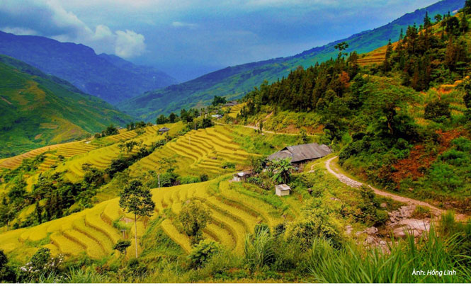 Những thửa ruộng óng ả từng lớp trải dài rộng trên khắp các bản làng của người dân tộc Mông, Dao quanh Sa Pa. Bạn có thể khám phá khung cảnh mùa lúa chín nên thơ ở các bản như Tả Van, Tả Phìn, Cát Cát, Sín Chải, đặc biệt là thung lũng Mường Hoa.