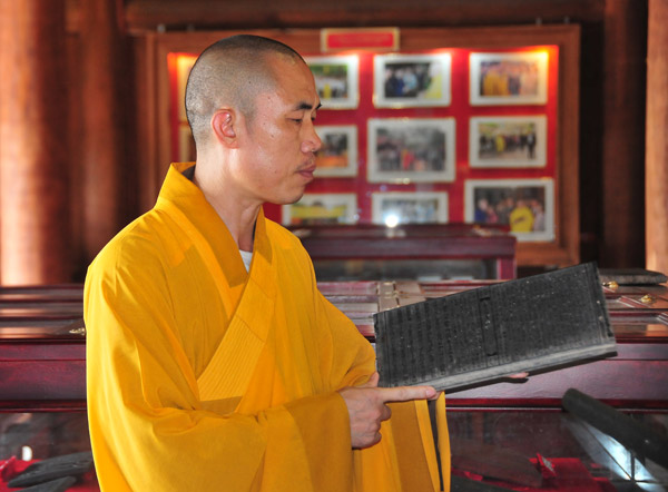 Một trang trong bộ “Kinh hoa nghiêm” trong số các mộc bản chùa Vĩnh Nghiêm.