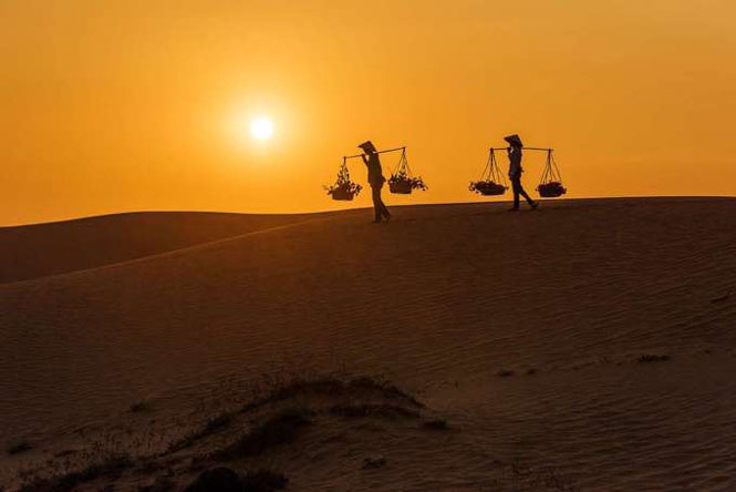 Mũi Né thuộc TP Phan Thiết, tỉnh Bình Thuận. Trang MSN xếp khung cảnh hoàng hôn ở đây đẹp thứ 10 và gợi ý du khách nên đến các bãi biển hoặc đồi cát để có thể chiêm ngưỡng khung cảnh đẹp đẽ này. Đồi cát Mũi Né, Bàu Trắng, Suối Tiên, làng chài Mũi Né cũng là những nơi bạn nên đến trong chuyến khám phá tỉnh duyên hải miền Trung.