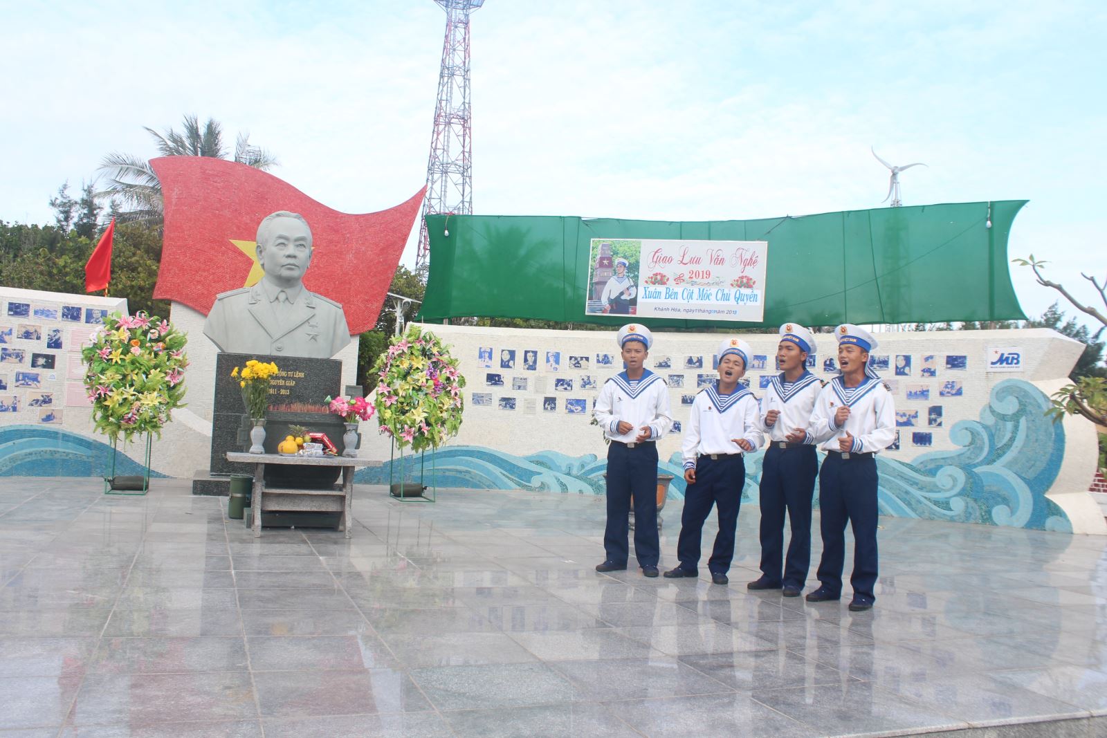 Các chiến sĩ đảo Sơn Ca đang tập một tiết mục văn nghệ tại Công viên Đại tướng Võ Nguyên Giáp.